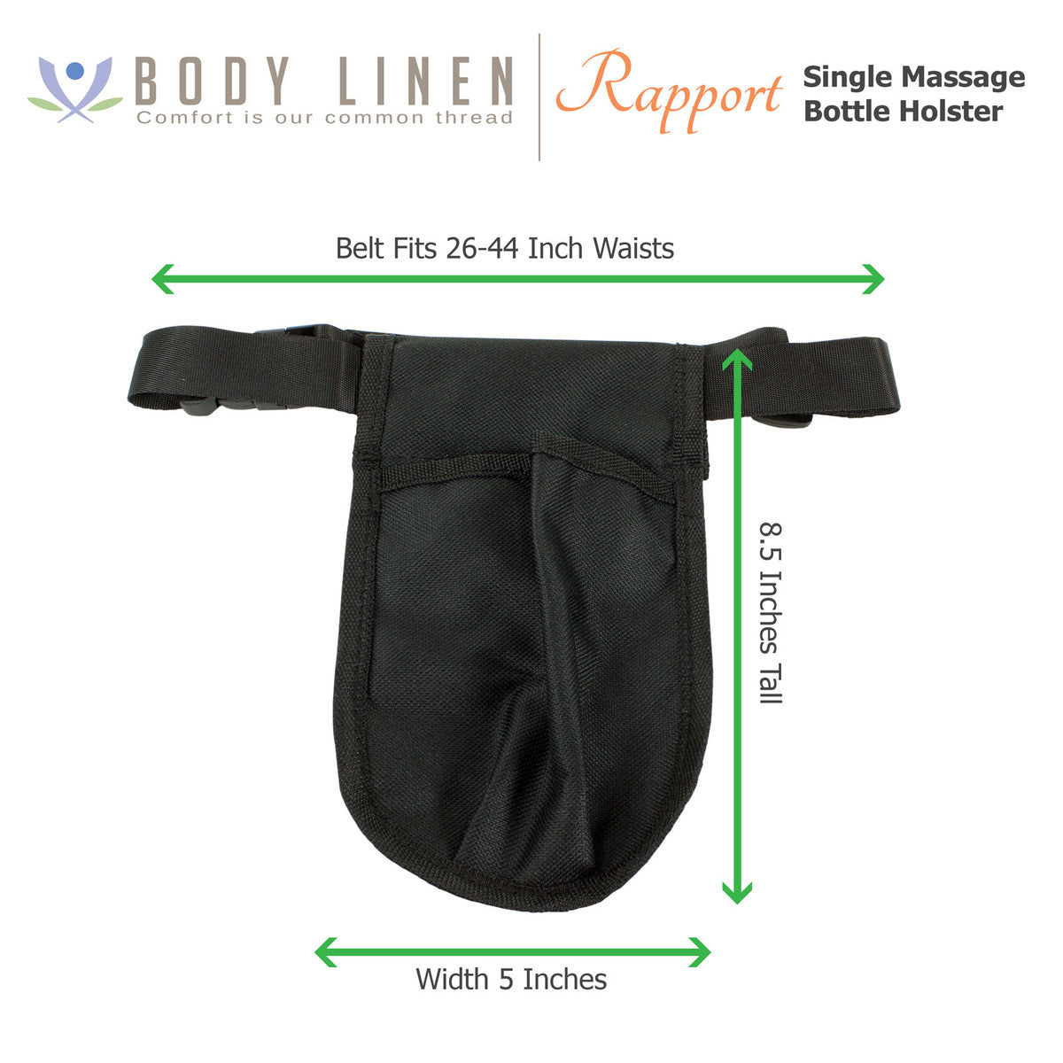 Keep your lotion bottle at your side with a handy lotion bottle holster. Holsters help you stay in close contact with your client at all times and avoid having to walk around the table to pick up supplies. 1" wide belt and heavy-duty edging make this belt more durable than other belts on the market.