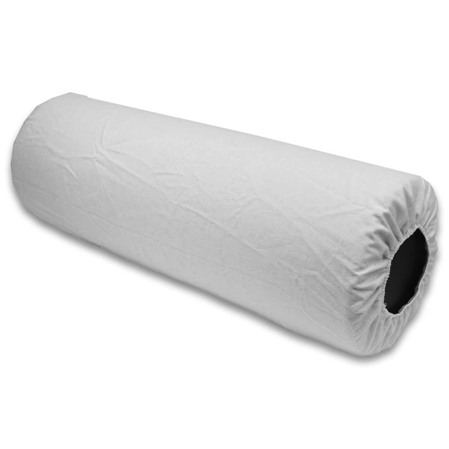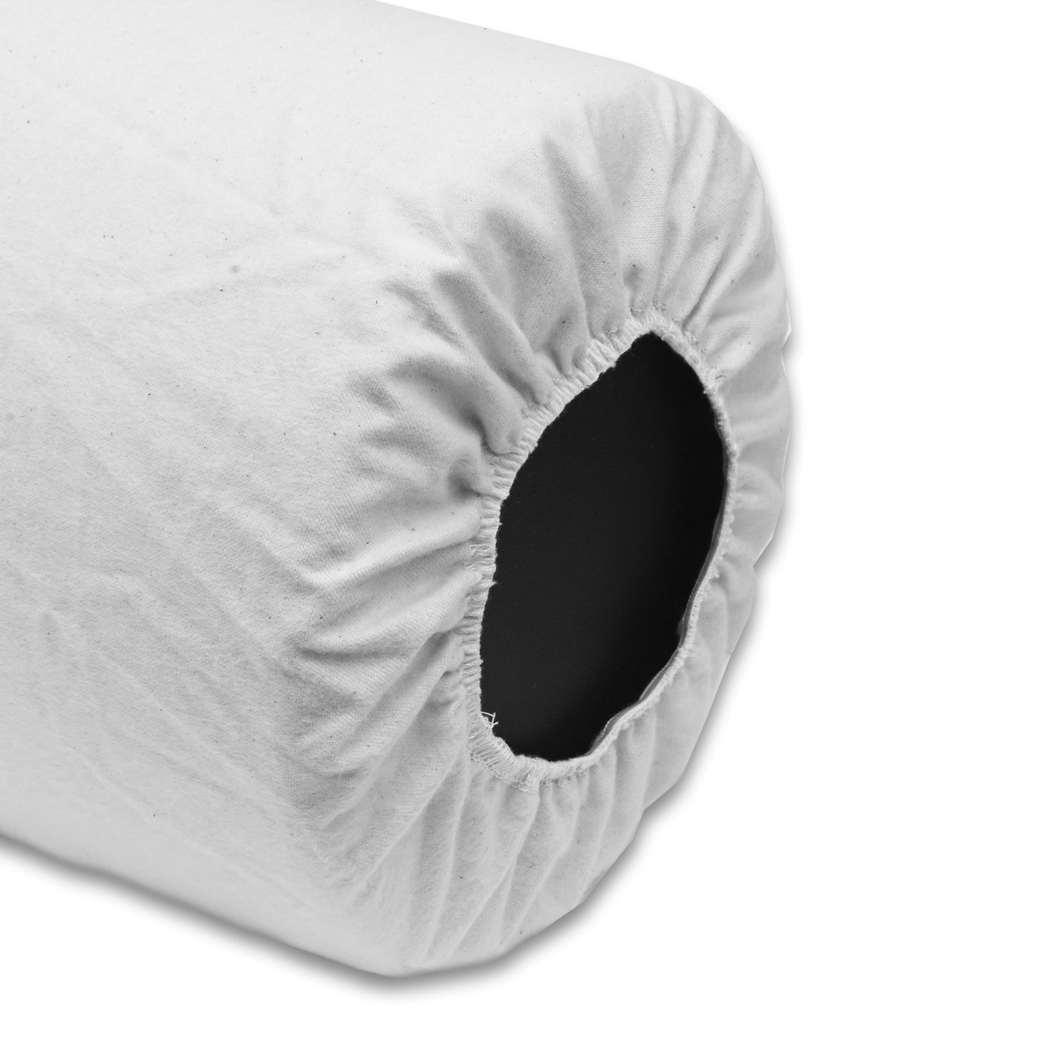 Our flannel bolster covers feature the coolness of cotton and the comfort of flannel. They make an attractive finishing touch to a welcoming massage table. 100% cotton flannel bolster cover for 9 inch diameter long circular bolsters up to 28 inches in length. Elastic on each end keeps bolster securely on cover. Available in white or natural.