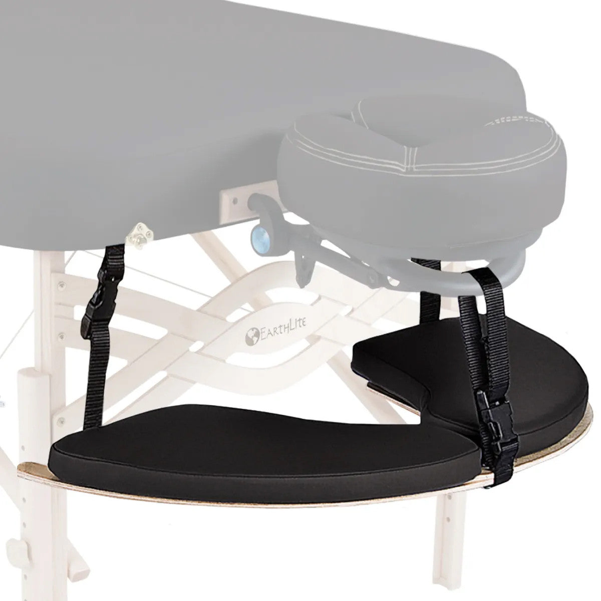 The Massage Table Arm Support is a great addition to any table. It allows clients to rest their arms comfortably while in the prone position, making it great for opening the shoulders for deeper access. Universal fit is designed to work with all major manufacturers' standard tables. Attaches below the face rest as shown in the photo. Padded and upholstered for client comfort. Available in black as shown.