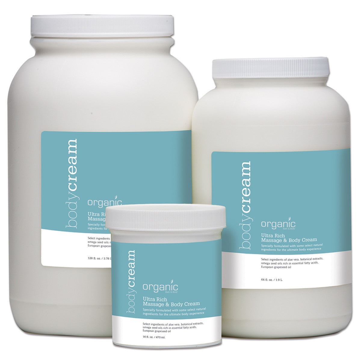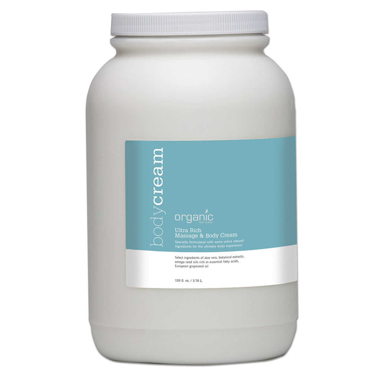 Organic Bath & Body Ultra Rich Massage and Body Cream is a combination of Certified Organic and natural seed oils, that are rich in essential fatty acids and botanical extracts. This multifunctional creme offers optimum skin nutrition, along with imparting a satin feel to one's skin, and perfect glide for a wonderful massage experience. Feels like a cream, acts like an oil, once absorbed in skin moisturizes and does not feel greasy. It is water dispersible and contains no nut oils or harsh preservatives. Use Ultra Rich Massage and Body Cream either for spa or massage treatments, or as a wonderful body treatment cream.