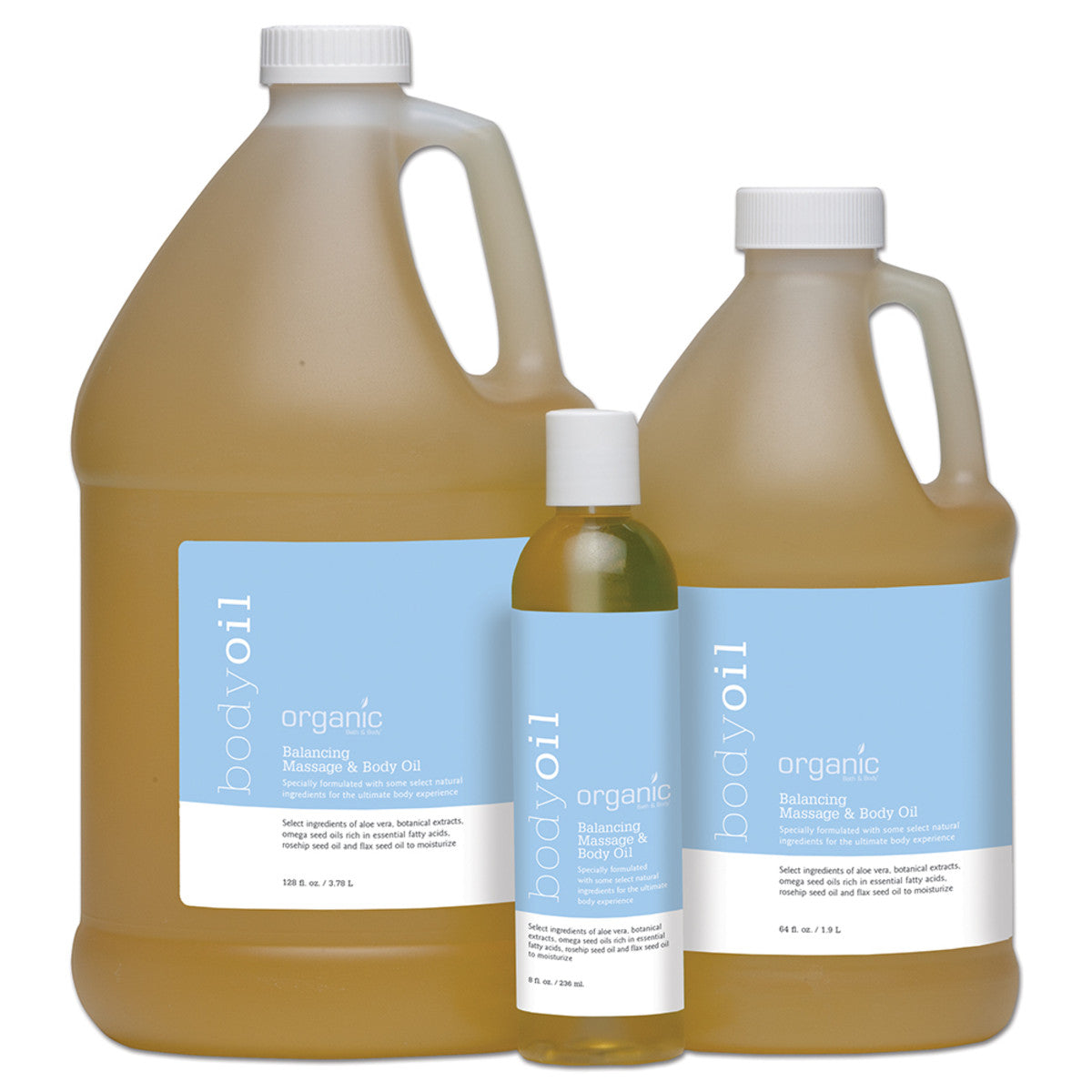 Organic Bath & Body Balancing Massage and Body Oil is a combination of Certified Organic and natural seed oils, that are rich in essential fatty acids. This formula offers optimum skin nutrition, along with imparting a satin feel to one's skin, and the perfect glide for a wonderful massage experience. Naturally preserved with Vitamin E, and it is water dispersible. Use Balancing Massage & Body Oil either scent free or add your favorite essential oil. It can also be used as an emollient body oil.