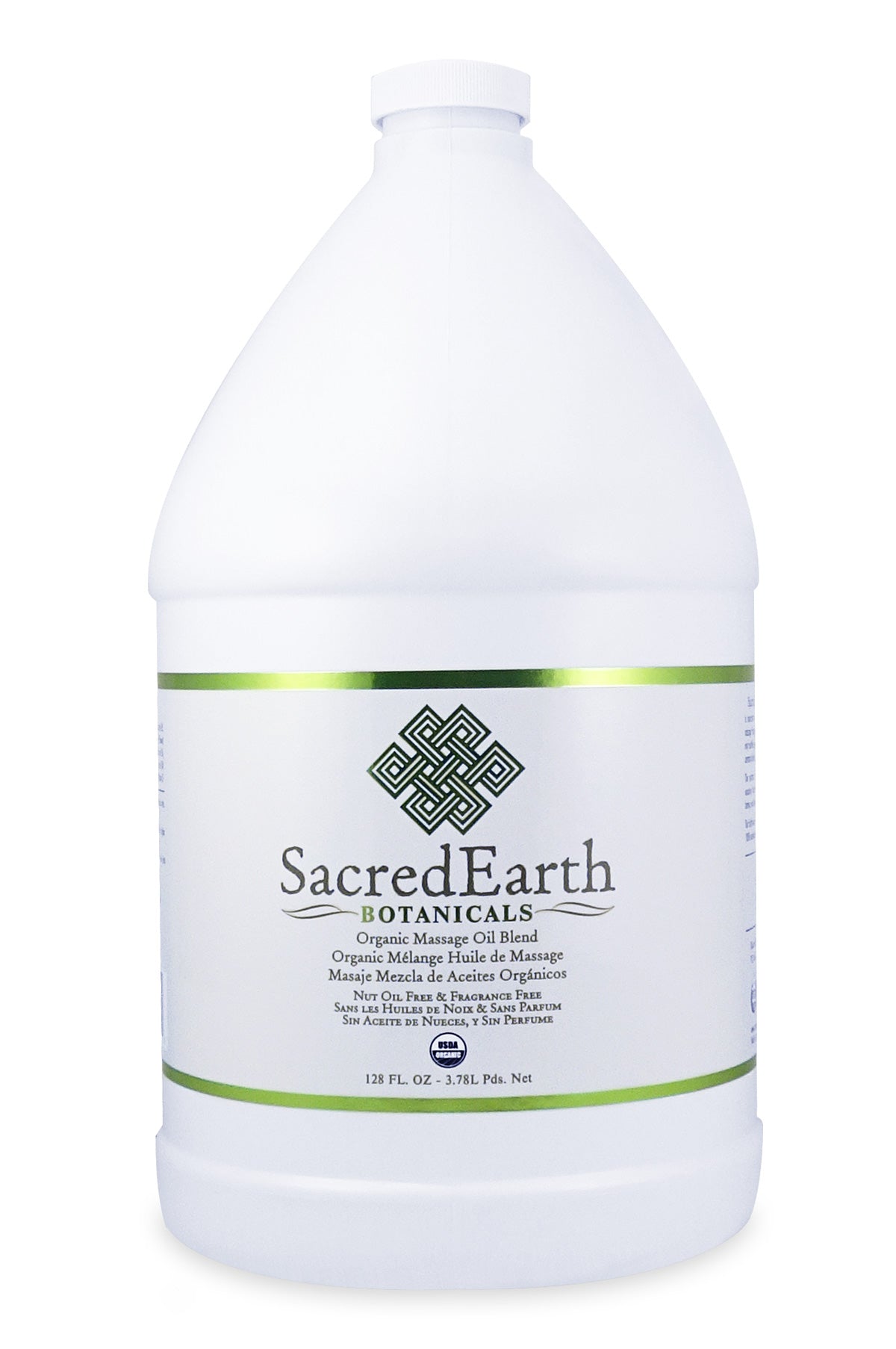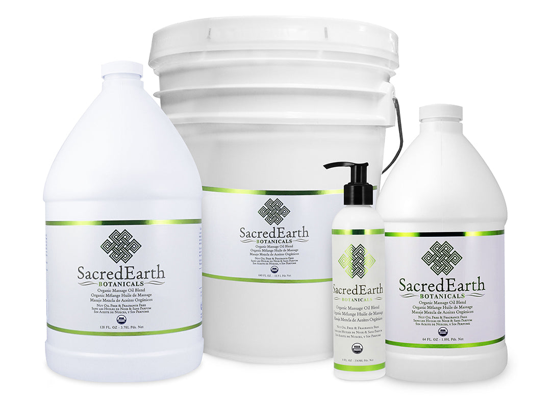 SacredEarth Botanicals® massage oil is handcrafted with only the finest USDA Certified Organic oils. The massage oil blend is light, glides easily over the surface yet provides enough drag to be excellent for deep tissue work. Very concentrated, a small amount of this oil will provide several minutes of workability and your clients will leave the table feeling like their skin has just been moisturized, not greasy.