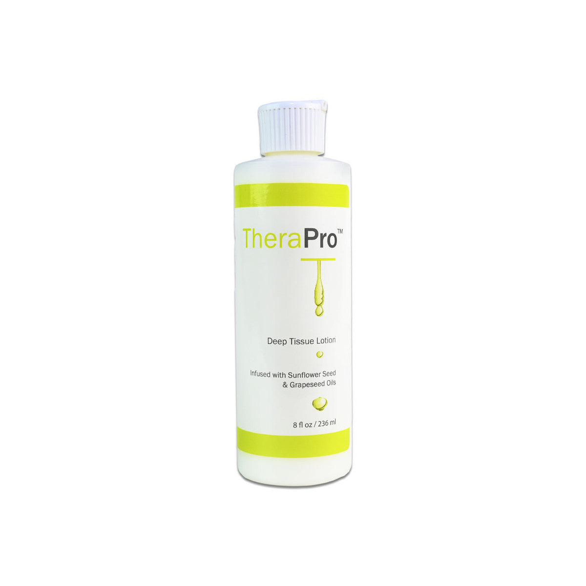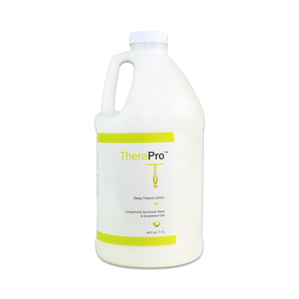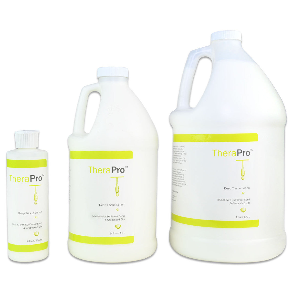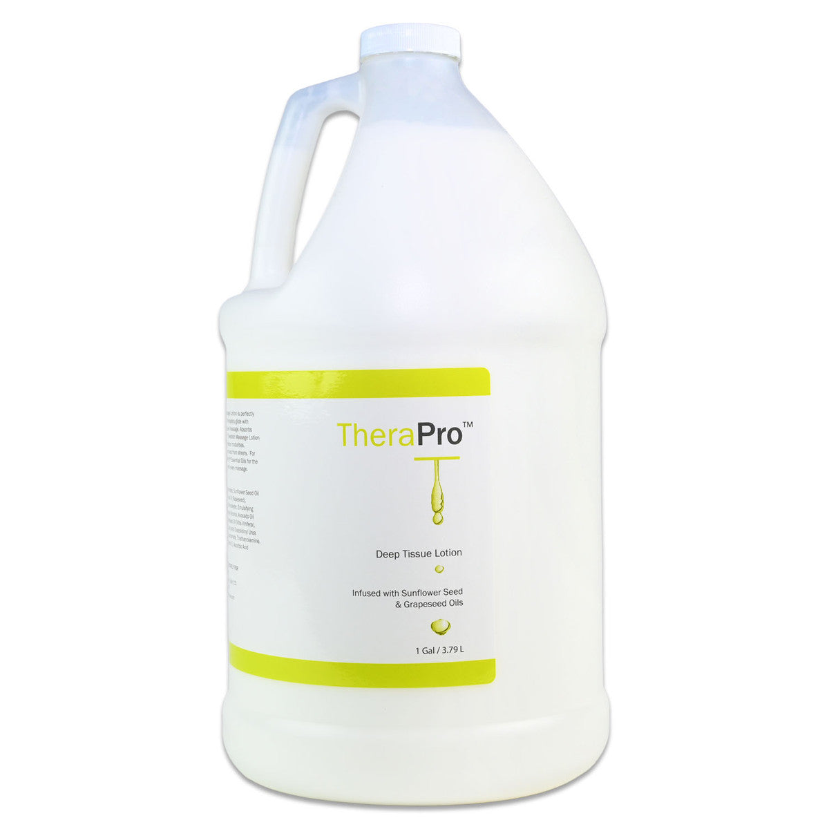 TheraPro Deep Tissue Massage Lotion is a perfectly balanced product that offers the massage therapists glide with enough friction for Deep Tissue massage. This lotion absorbs more rapidly than TheraPro Swedish Massage Lotion and is perfectly suited for deeper modalities. TheraPro Deep Tissue lotion is non-greasy and easily removed from sheets for easy cleanup. It washes completely out of linens leaving no stains or undesirable odors. For an added treat you can add TheraPro essential oil blends for the benefits of aromatherapy. Water dispersible. Available in 8 oz bottle, and 1/2 gal, and 1-gallon containers.