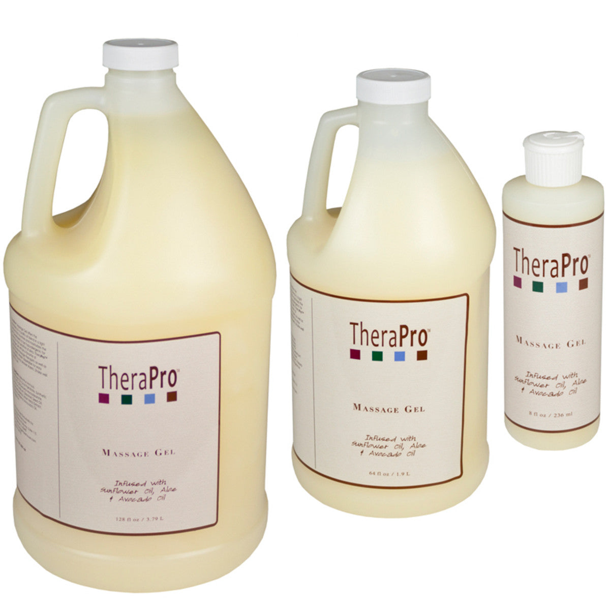 TheraPro Massage Gel offers the ease and workability of a quality oil blend in a light, long lasting formula that nourishes and moisturizes the skin. This massage gel disperses like a lotion, but glides on the skin like an oil. The hypoallergenic formula is ideal for clients with even the most sensitive skin types. Because it’s water dispersible, there is no greasy or sticky residue and clean up and laundering is a breeze. TheraPro Massage Gel is ideal for light to semi-deep work and the benefits of this gel will quickly make it a favorite among professional Massage Therapists, as well as their clients. This massage gel is extremely efficient because it provides much more coverage and consistency than regular massage oils, which will allow the therapist to use and apply less throughout each massage. Buy some now and see for yourself the benefits of TheraPro Massage Gel! TheraPro Massage Gel is available in 8 oz, 1/2 gallon, and 1-gallon sizes.